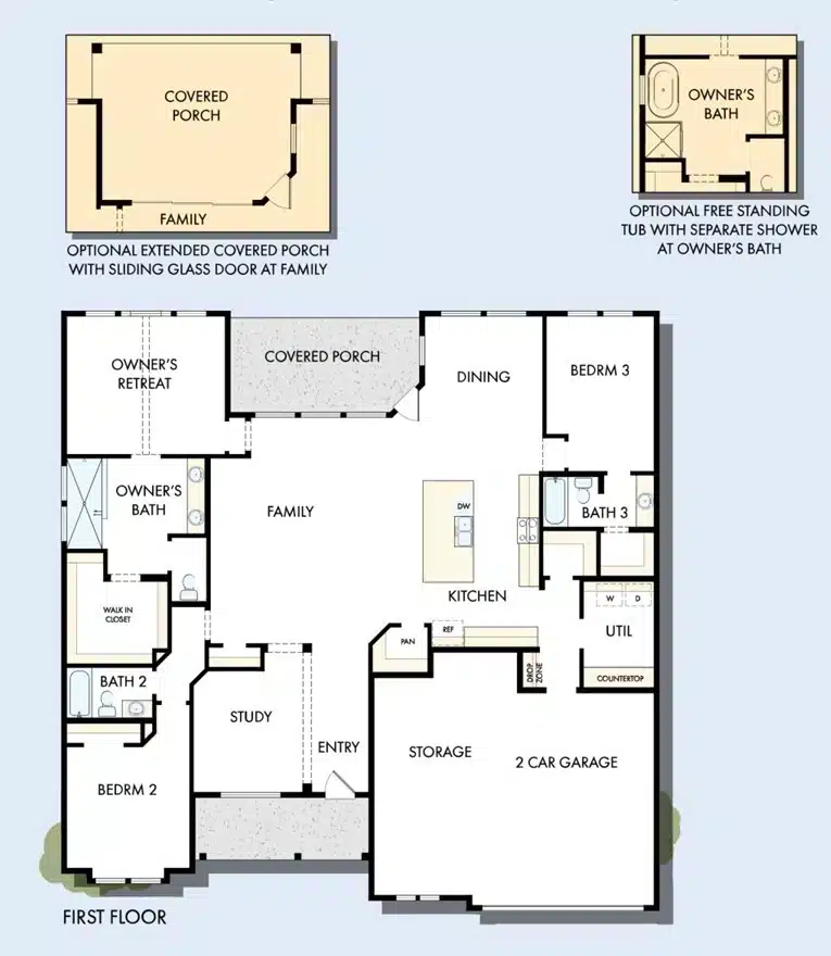Elevate your lifestyle with The Brooke floor plan by David Weekley Homes in Kissing Tree. The front door opens onto an expansive view of this home’s sunny gathering spaces.