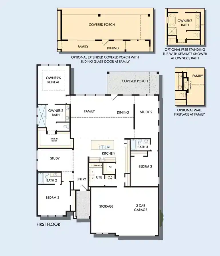 Welcome to the classic-meets-contemporary Sentinel floor plan by David Weekley Homes in Kissing Tree. Grand ceilings and open space make the family and dining spaces especially impressive.