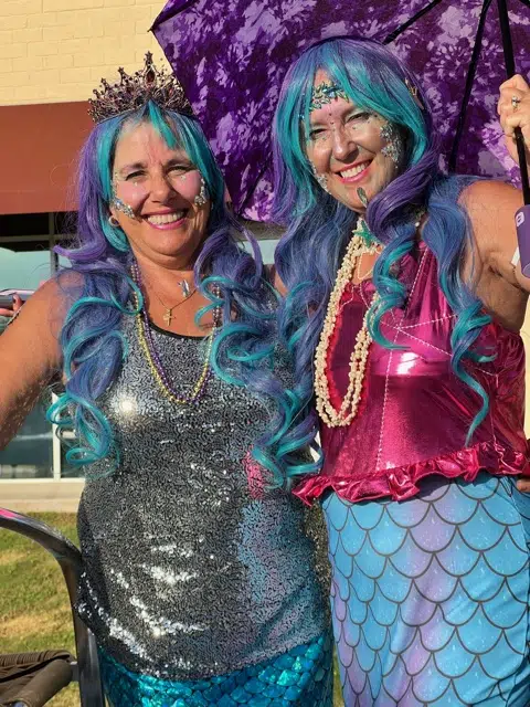 The group assembled the float on the Friday evening before the big parade so that early Saturday morning they could make the slow journey to the staging ground. Our float featured four mermaids with brightly colored tails and four human ladies in KT shirts. Fearless Activities Director Kevin Wilson rode along on his bike to take pictures and provide support during the parade route. “It was a very large turnout – the best ever,” Joy said. “We had a blast!”