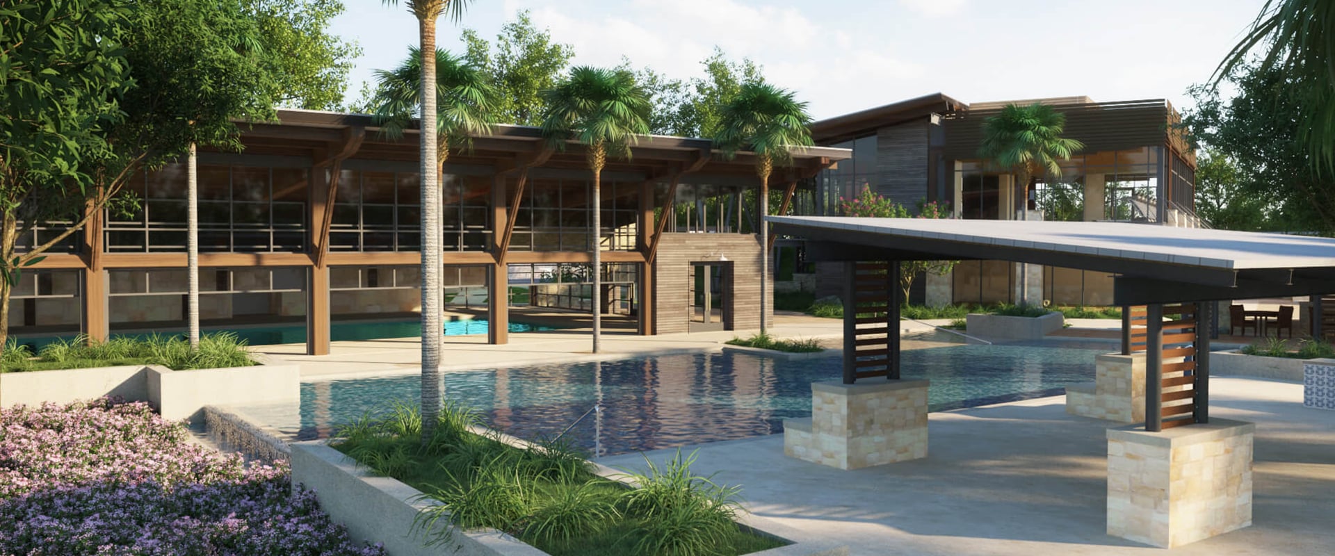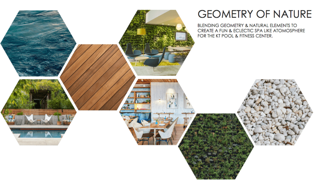 Jenelle: My first projects at Kissing Tree were the Welcome Center and social building, which I started working on in in March or April of 2018. The Pool and Fitness Center design concept work started in the autumn of last year.