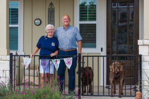 With family in Austin, Neal and Sally chose Kissing Tree for the location and amenities. They stay active with golf and pickleball, as well as walks around the neighborhood with their dog, Junior.